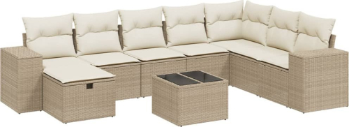 vidaXL 9-cz. zestaw mebli ogrodowych z poduszkami, beżowy, polirattan