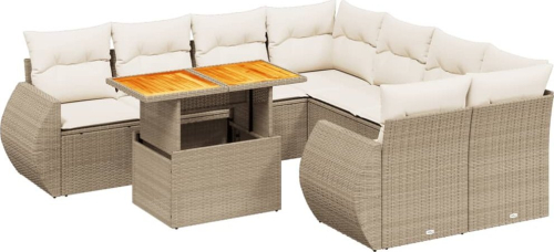 vidaXL 9-cz. zestaw mebli ogrodowych z poduszkami, beżowy, polirattan