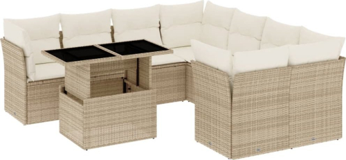 vidaXL 9-cz. zestaw mebli ogrodowych z poduszkami, beżowy, polirattan