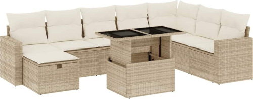 Vidaxl 9-cz. zestaw mebli ogrodowych z poduszkami, beżowy, polirattan