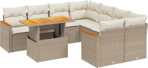 vidaXL 9-cz. zestaw mebli ogrodowych z poduszkami, beżowy, polirattan