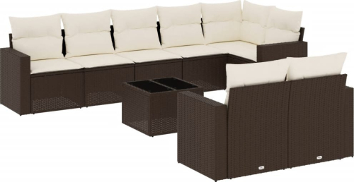 vidaXL 9-cz. zestaw mebli ogrodowych z poduszkami, brązowy, polirattan