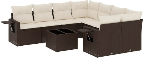 vidaXL 9-cz. zestaw mebli ogrodowych z poduszkami, brązowy, polirattan