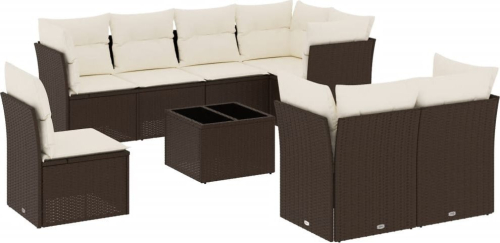 vidaXL 9-cz. zestaw mebli ogrodowych z poduszkami, brązowy, polirattan