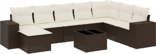 vidaXL 9-cz. zestaw mebli ogrodowych z poduszkami, brązowy, polirattan
