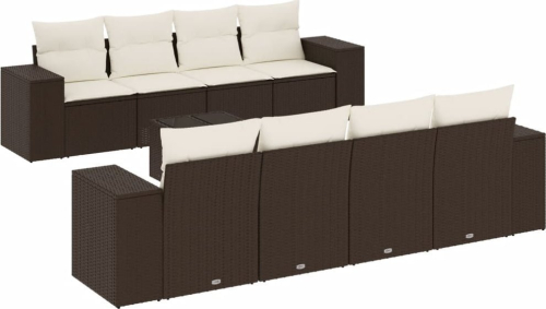 vidaXL 9-cz. zestaw mebli ogrodowych z poduszkami, brązowy, polirattan