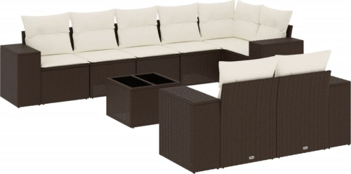 vidaXL 9-cz. zestaw mebli ogrodowych z poduszkami, brązowy, polirattan