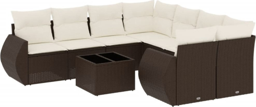 vidaXL 9-cz. zestaw mebli ogrodowych z poduszkami, brązowy, polirattan