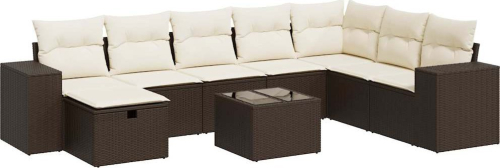 vidaXL 9-cz. zestaw mebli ogrodowych z poduszkami, brązowy, polirattan