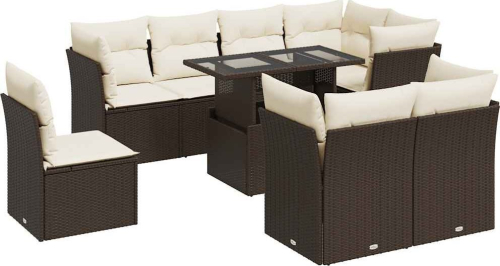 vidaXL 9-cz. zestaw mebli ogrodowych z poduszkami, brązowy, polirattan