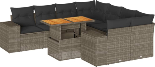 vidaXL 9-cz. zestaw mebli ogrodowych z poduszkami, szary, polirattan