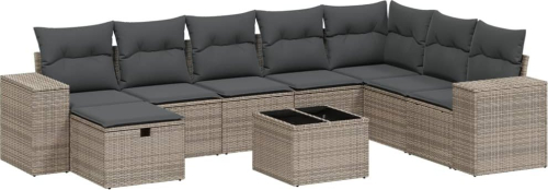 vidaXL 9-cz. zestaw mebli ogrodowych z poduszkami, szary, polirattan