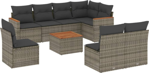 vidaXL 9-cz. zestaw mebli ogrodowych z poduszkami, szary, polirattan