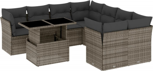 vidaXL 9-cz. zestaw mebli ogrodowych z poduszkami, szary, polirattan
