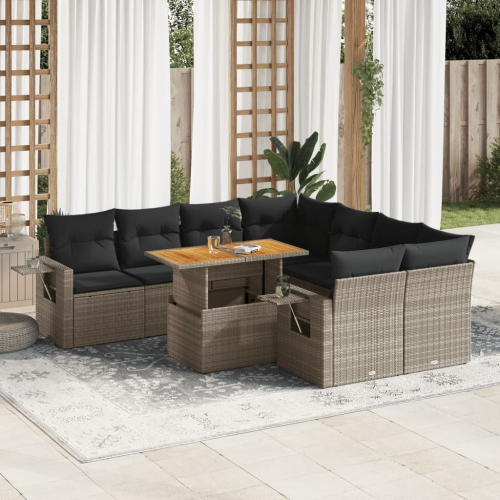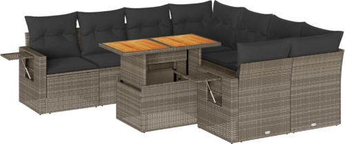 vidaXL 9-cz. zestaw mebli ogrodowych z poduszkami, szary, polirattan