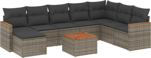 vidaXL 9-cz. zestaw mebli ogrodowych z poduszkami, szary, polirattan