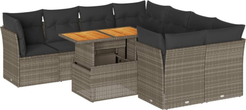 vidaXL 9-cz. zestaw mebli ogrodowych z poduszkami, szary, polirattan