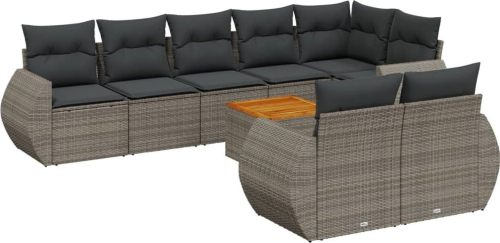vidaXL 9-cz. zestaw mebli ogrodowych z poduszkami, szary, polirattan