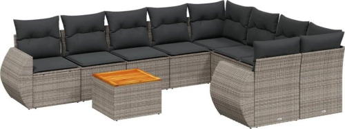 vidaXL 9-cz. zestaw mebli ogrodowych z poduszkami, szary, polirattan