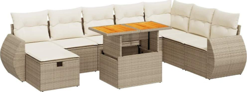 vidaXL 9-cz. zestaw mebli z poduszkami, beżowy, polirattan i akacja
