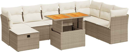 vidaXL 9-cz. zestaw mebli z poduszkami, beżowy, polirattan i akacja