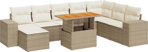 vidaXL 9-cz. zestaw mebli z poduszkami, beżowy, polirattan i akacja