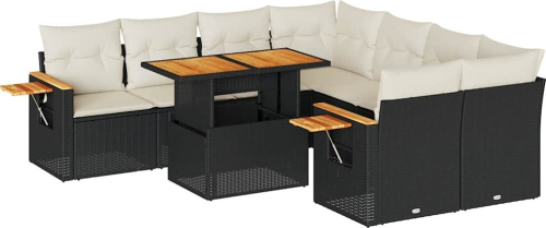 Vidaxl 9-cz. zestaw mebli z poduszkami, czarny, polirattan i akacja