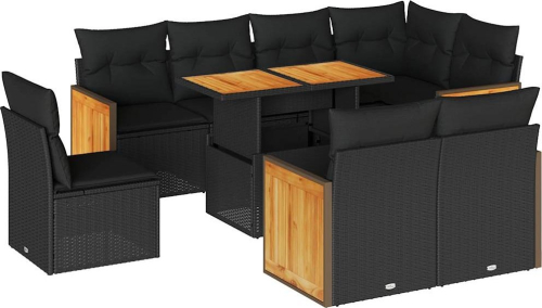 vidaXL 9-cz. zestaw mebli z poduszkami, czarny, polirattan i akacja