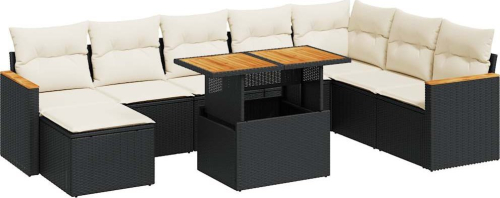 vidaXL 9-cz. zestaw mebli z poduszkami, czarny, polirattan i akacja