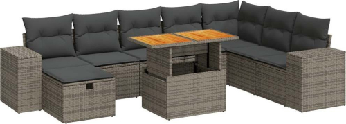 vidaXL 9-cz. zestaw mebli z poduszkami, szary, polirattan i akacja