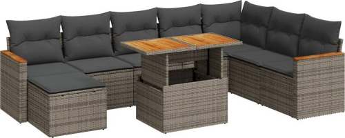 vidaXL 9-cz. zestaw mebli z poduszkami, szary, polirattan i akacja