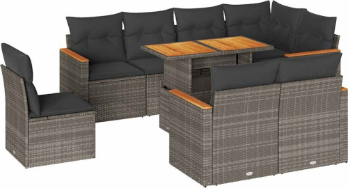 vidaXL 9-cz. zestaw mebli z poduszkami, szary, polirattan i akacja