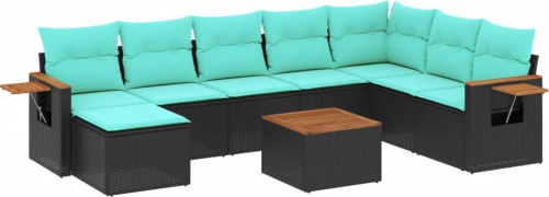 vidaXL 9-cz. zestaw wypoczynkowy do ogrodu, z poduszkami, czarny