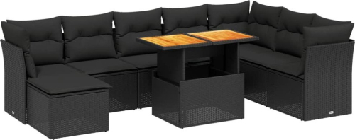 vidaXL 9-cz. zestaw wypoczynkowy do ogrodu, z poduszkami, czarny
