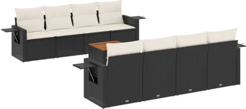 vidaXL 9-cz. zestaw wypoczynkowy do ogrodu, z poduszkami, czarny