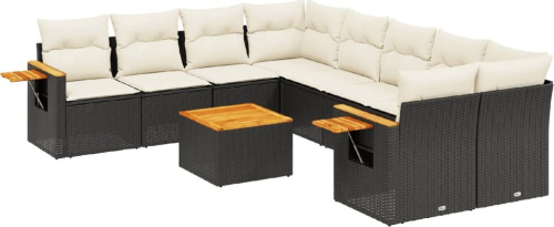 vidaXL 9-cz. zestaw wypoczynkowy do ogrodu, z poduszkami, czarny