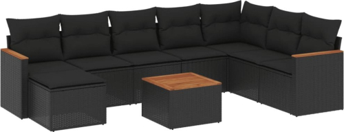 vidaXL 9-cz. zestaw wypoczynkowy do ogrodu, z poduszkami, czarny