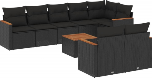 vidaXL 9-cz. zestaw wypoczynkowy do ogrodu, z poduszkami, czarny