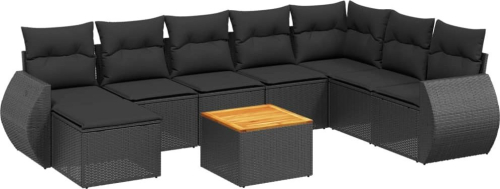 vidaXL 9-cz. zestaw wypoczynkowy do ogrodu, z poduszkami, czarny