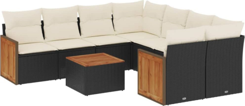 vidaXL 9-cz. zestaw wypoczynkowy do ogrodu, z poduszkami, czarny