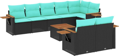 vidaXL 9-cz. zestaw wypoczynkowy do ogrodu, z poduszkami, czarny