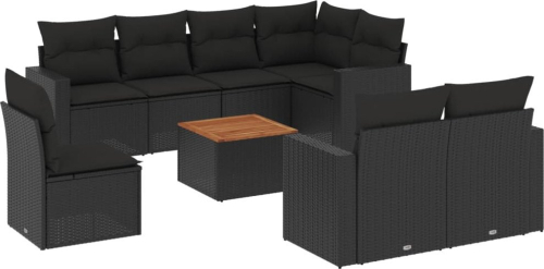 vidaXL 9-cz. zestaw wypoczynkowy do ogrodu, z poduszkami, czarny