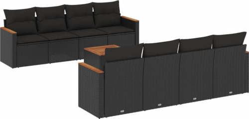 vidaXL 9-cz. zestaw wypoczynkowy do ogrodu, z poduszkami, czarny