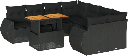 vidaXL 9-cz. zestaw wypoczynkowy do ogrodu, z poduszkami, czarny