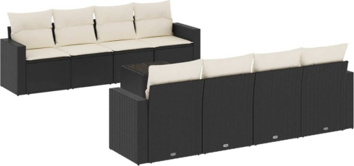 vidaXL 9-cz. zestaw wypoczynkowy do ogrodu, z poduszkami, czarny