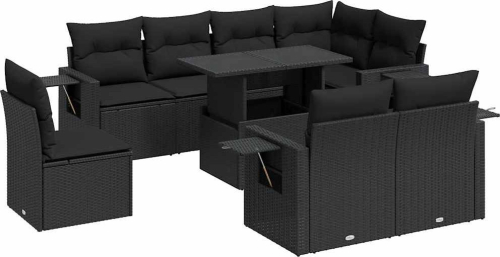 vidaXL 9-cz. zestaw wypoczynkowy do ogrodu, z poduszkami, czarny