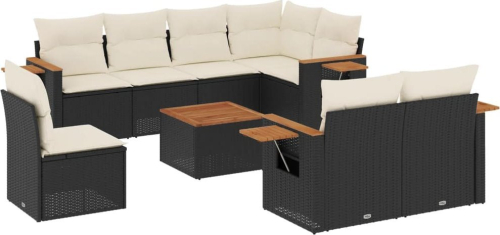 vidaXL 9-cz. zestaw wypoczynkowy do ogrodu, z poduszkami, czarny
