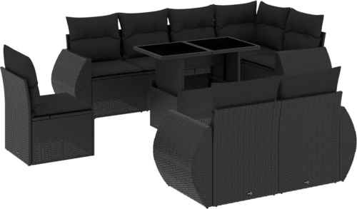 vidaXL 9-cz. zestaw wypoczynkowy do ogrodu, z poduszkami, czarny