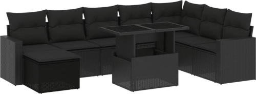 vidaXL 9-cz. zestaw wypoczynkowy do ogrodu, z poduszkami, czarny