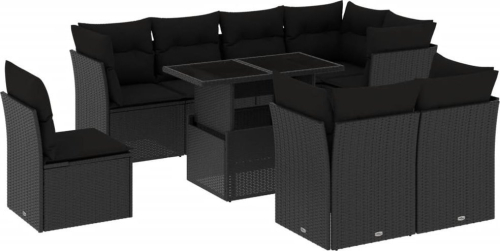 vidaXL 9-cz. zestaw wypoczynkowy do ogrodu, z poduszkami, czarny